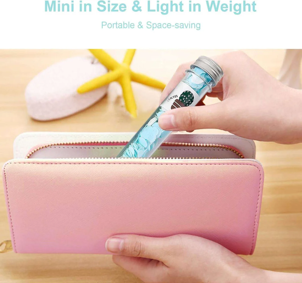 Cute mini soap paper tube fits easily in pouch , bag or even pocket making it a travel friendly products . A perfect travel size toiletries hand soap , a better option than questionable hygienic hotel soap.
