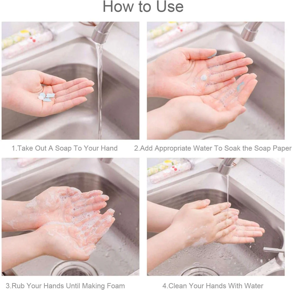 Ideal for use at home or on the road. Scents can provide a sense of fun or relaxation. Paper soap for children, men, and women, as well as for travel or office use. to always have a clean hand. This small & multipurpose travel soap can be used on any part of the body at any time. Our natural hand soap with potent plant extracts is family-safe, wholesome, and leaves no residue, and it is suitable for all skin types. Gentle & Antibacterial These antibacterial foaming hand soap refills create a soluble antibacterial lather that dissolves quickly and keeps your hands from becoming dry. Naturally moisturizing hand soap is gentle on the skin while effectively removing even the most stubborn dirt and bacteria. Portable & Lightweight These portable, small, and versatile soap sheets are perfect for discreet and convenient use while hiking, backpacking, playing sports, and traveling with the family; useful and safe for children to use as hygienic hand soap for school, trips, and ideal camping toiletries. Easy To Use Remove soap flakes with dry hands, then wet them with a little water, gently knead to produce a lot of lather, and rinse off with water to get squeaky clean and hygienic hands anytime anywhere.
