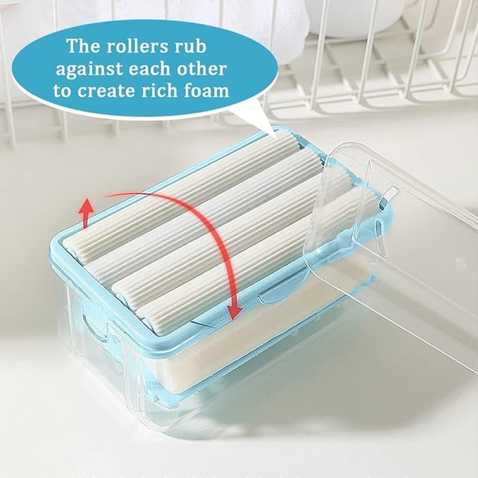 To generate a lot of bubbles for a greater cleaning effect, rub the soap bar with the rotation of the four saw tooth sponge rollers.
