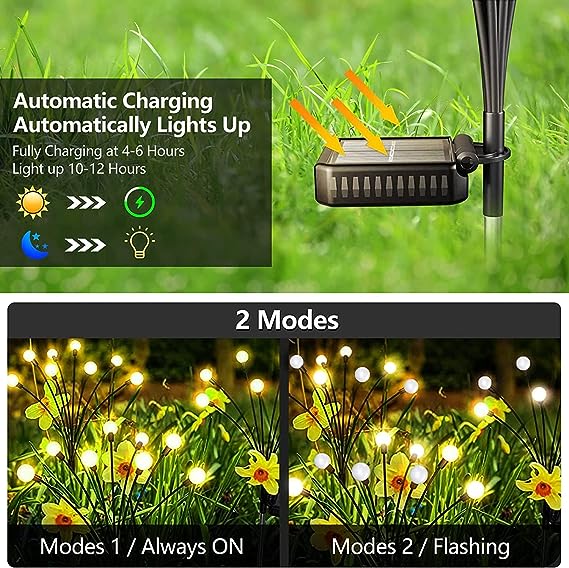 SOLAR POWERED GARDEN LIGHTS OUTDOOR FIREFLY FAIRY LAMP FOR HOME, YARD